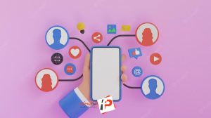 عکس استوک موبایل با آیکون شبکه های اجتماعی